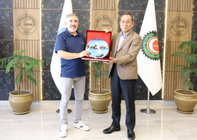 Karşılıklı iyi dilek temennileri ile sohbet havasında geçen görüşmede Genel Başkanımız Dolu, Toshiki Yamagami'ye hatıra plaket hediye etti.