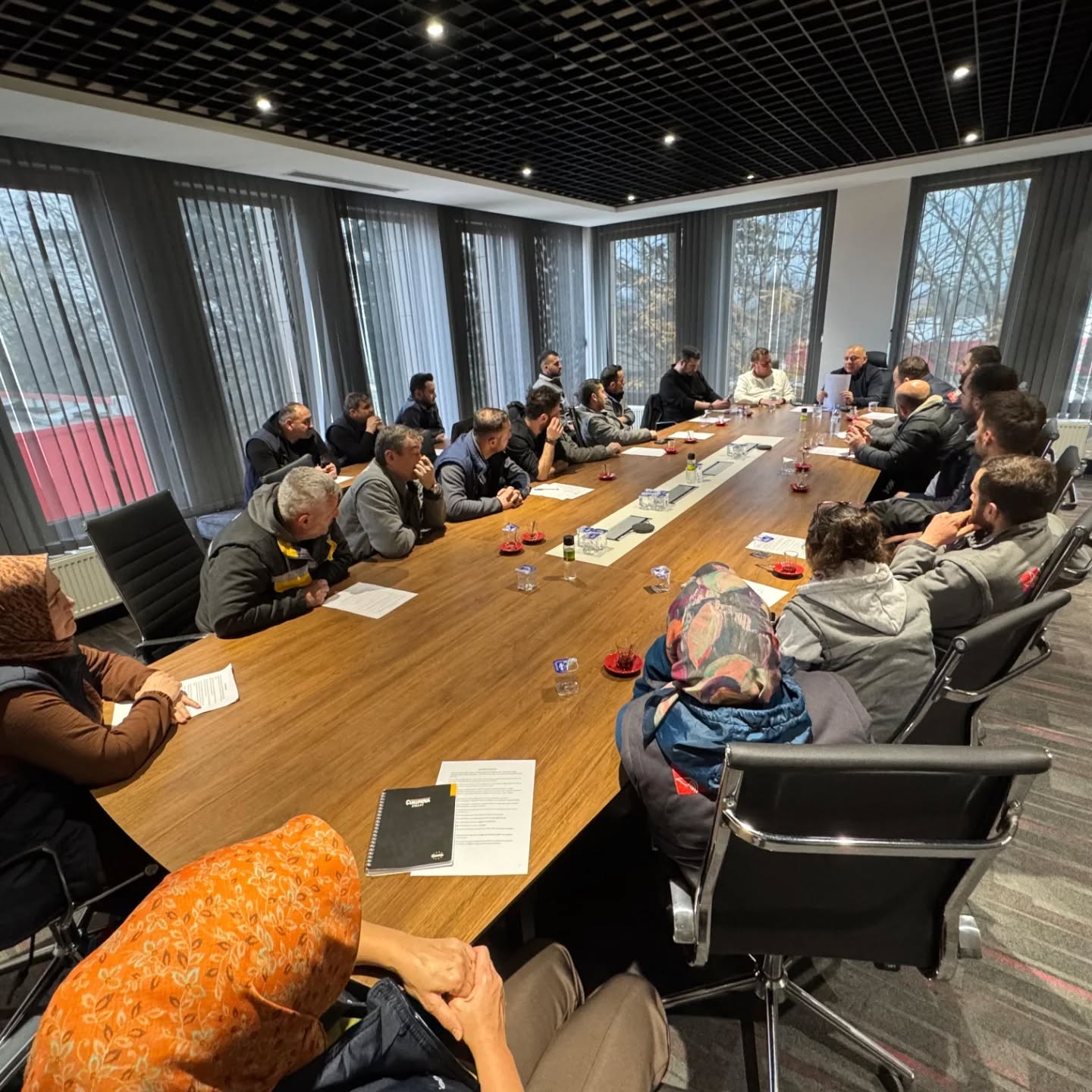 Genel Başkan Yardımcımız Seyhan Sarıgüzel'in katılım sağladığı ve üyelerimizin sorun ve taleplerinin değerlendirildiği toplantımıza İşvereni temsilen Kelebek Mobilya İK Müdürü Levent Burucu, İdari İşler Şefi Ömer Acar, İsyeri Baş temsilcimiz Sinan Duman, temsilcilerimiz ve her bölümden üyelerimiz katıldı.