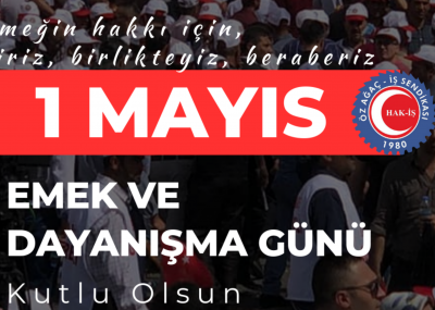 Bu anlayışla Emeğin en yüce değer olduğu bilinciyle, alın teriyle hayatı inşa eden, emeği ile üretime değer katan, haklı mücadelelerinde gelecek hakkını birlikte aradığımız üyelerimiz başta olmak üzere tüm emekçilerin 1 Mayıs İşçi Bayramı kutlu olsun! Adaletin, eşitliğin ve dayanışmanın günü kutlu olsun!"