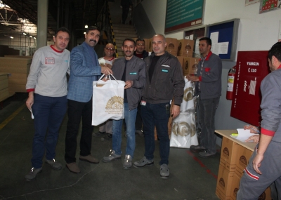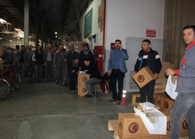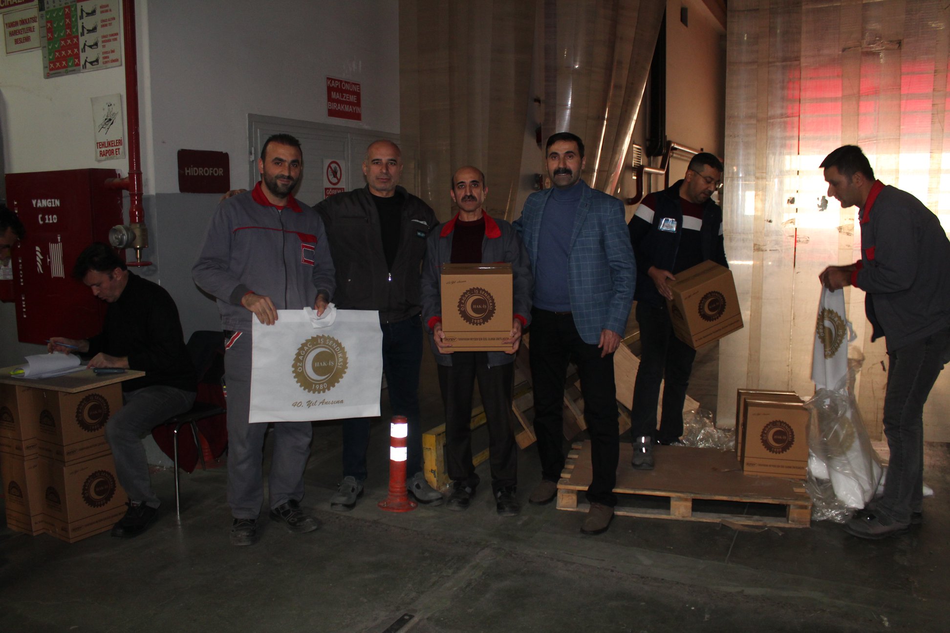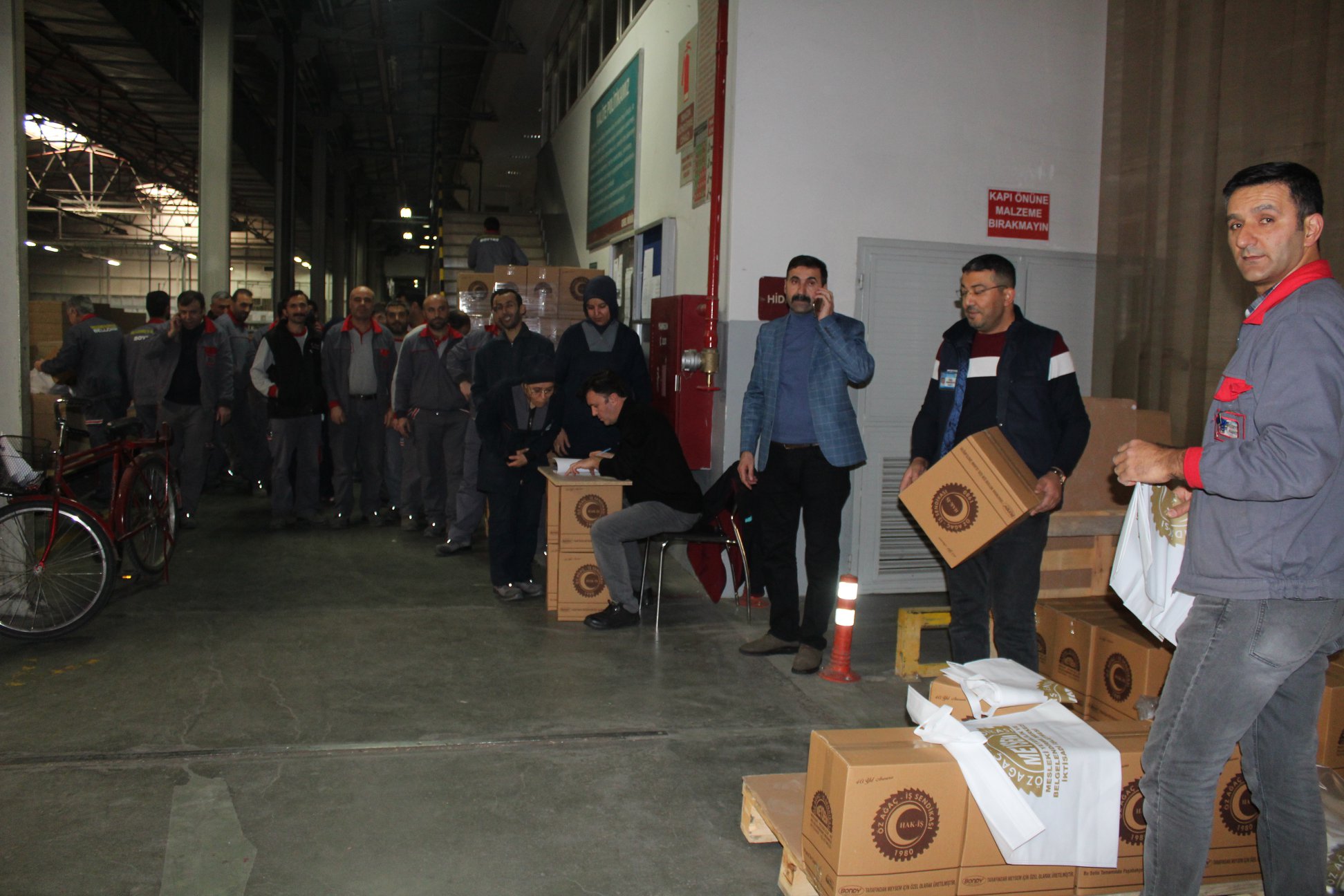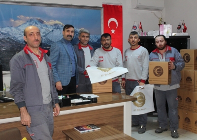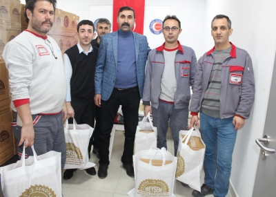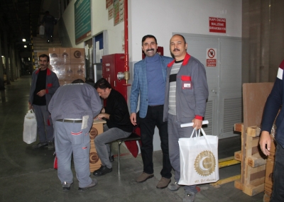 Hediyelerimiz Kayseri'de kurulu bulunan BELLONA Fabrikası üyelerimize ulaştı. Hediyeler Genel Başkan Yardımcımız Emin Hayta ve Baştemsilcilerimiz tarafından üyelerimize dağıtıldı.