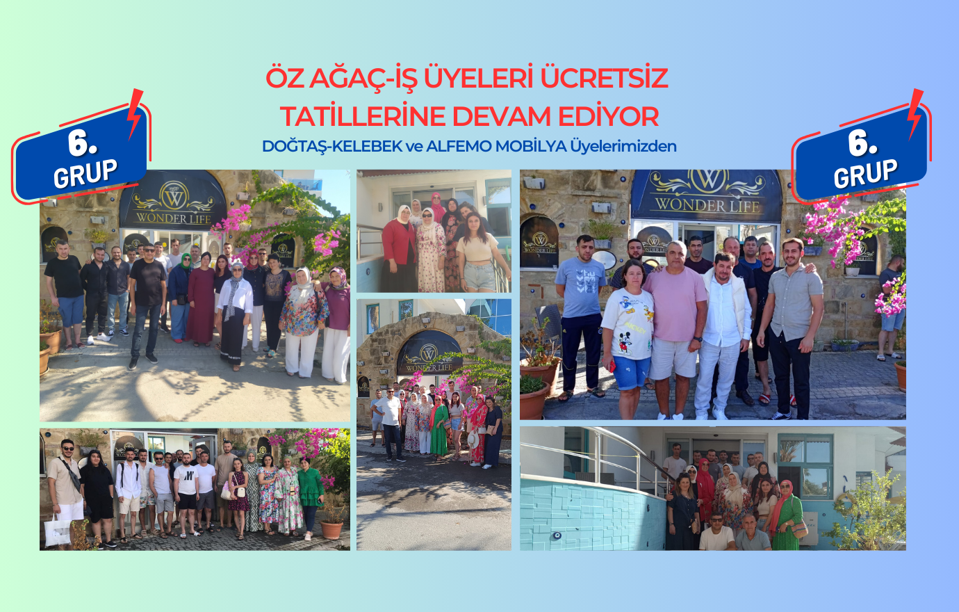 DOĞTAŞ-KELEBEK ve ALFEMO MOBİLYA ÜYELERİMİZDEN OLUŞAN 6. GRUBUMUZ SENDİKAMIZIN OTELİNDE TATİLLERİNİ TAMAMLADI.