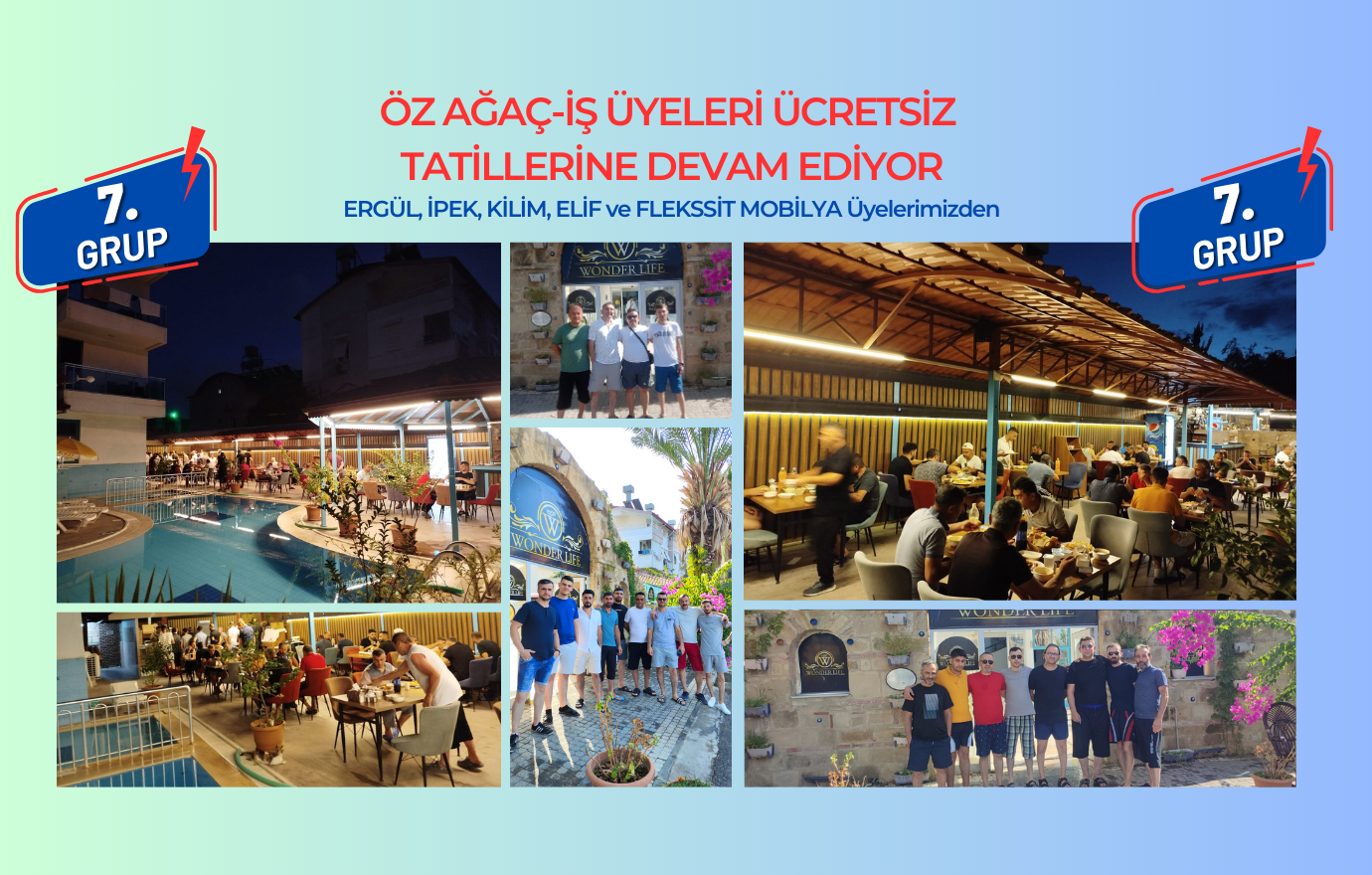 KİLİM MOBİLYA, ERGÜL MOBİLYA, ELİF MOBİLYA ve FLEKSSİT MOBİLYA ÜYELERİMİZDEN OLUŞAN 7. GRUBUMUZ SENDİKAMIZIN OTELİNDE TATİLLERİNİ TAMAMLADI.