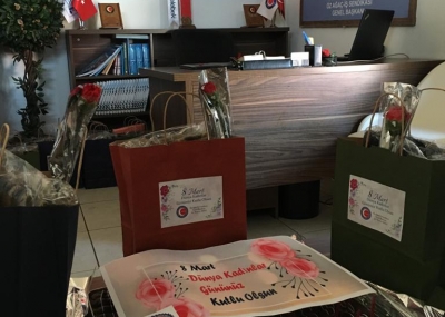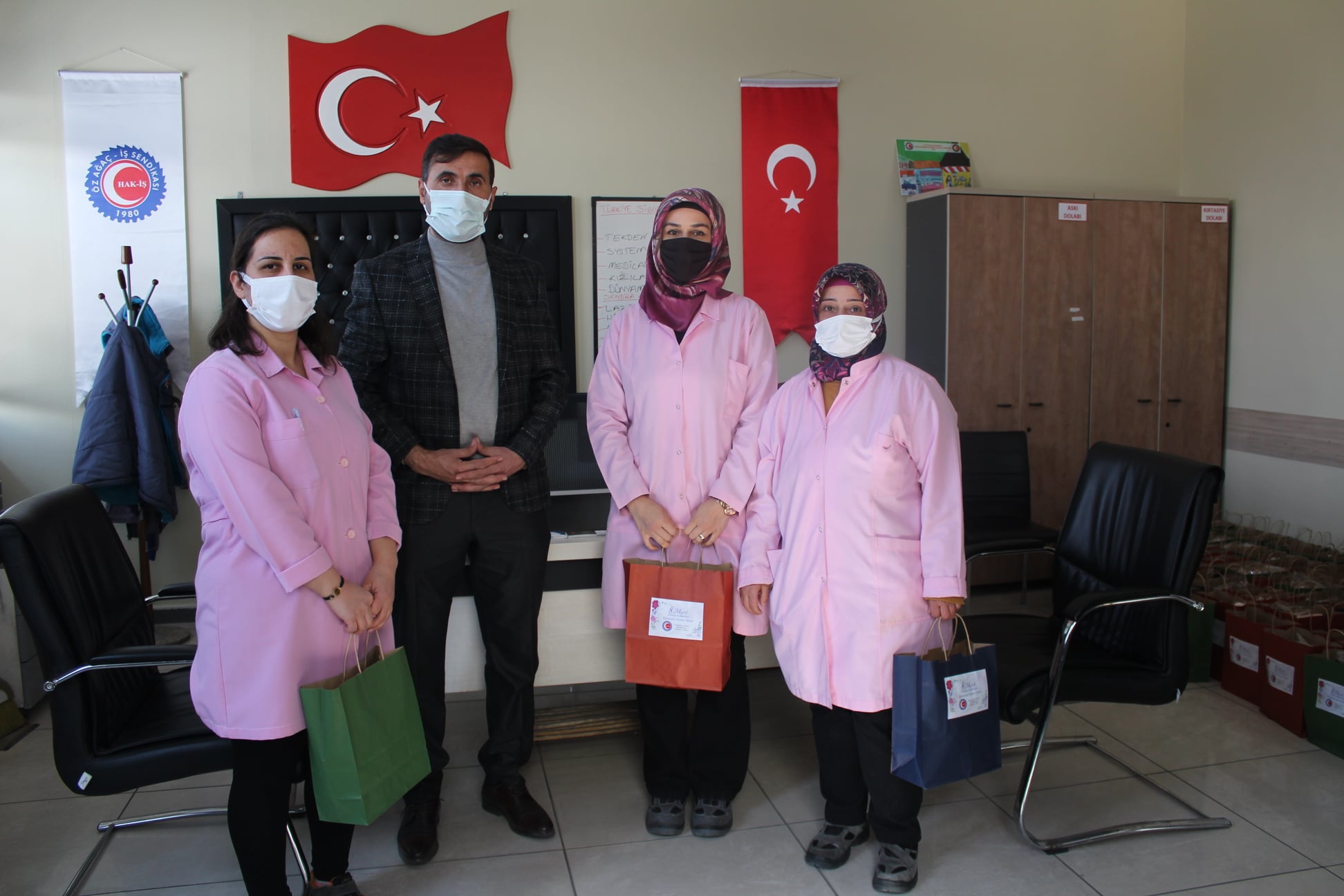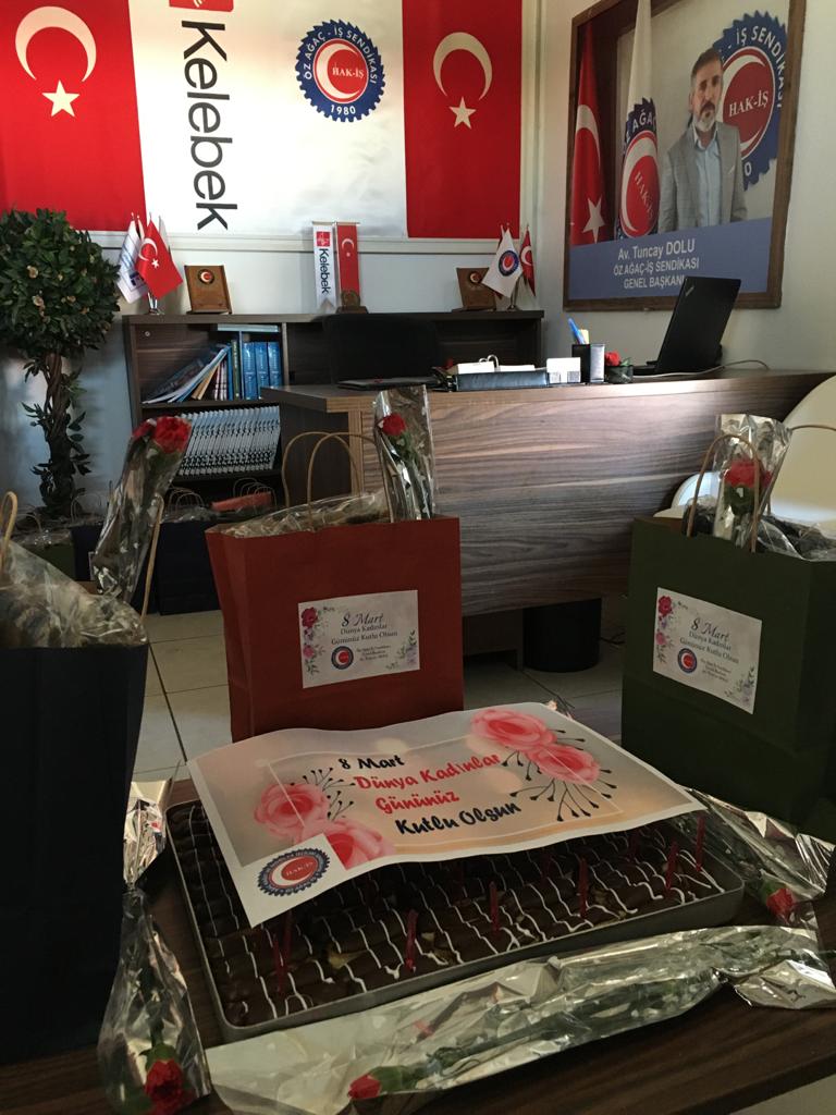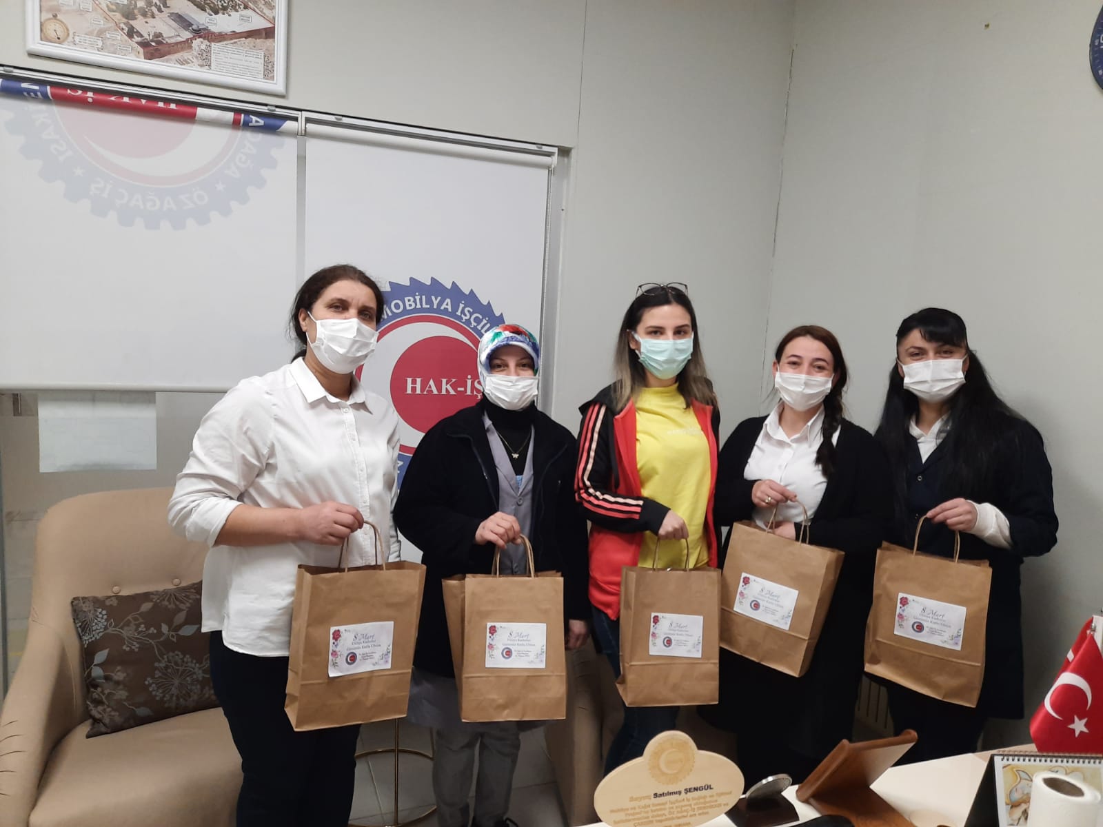 GENEL BAŞKANIMIZ AV. TUNCAY DOLU 8 MART DÜNYA KADINLAR GÜNÜ MÜNASEBETİYLE SENDİKAMIZIN BU GÜNE ÖZEL HAZIRLATTIĞI HEDİYELERİ KADIN ÜYELERIMIZE TAKDİM ETTİ VE BIR KUTLAMA MESAJI YAYINLADI.