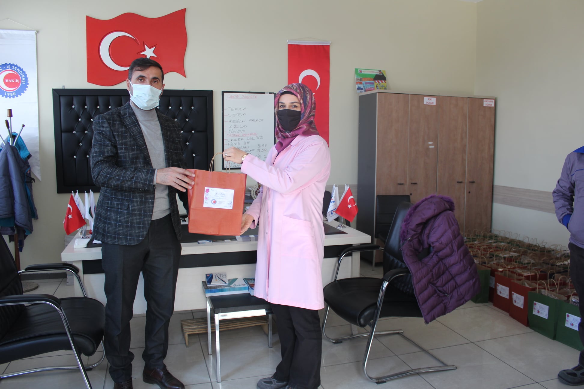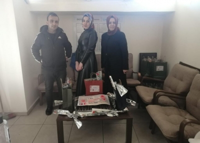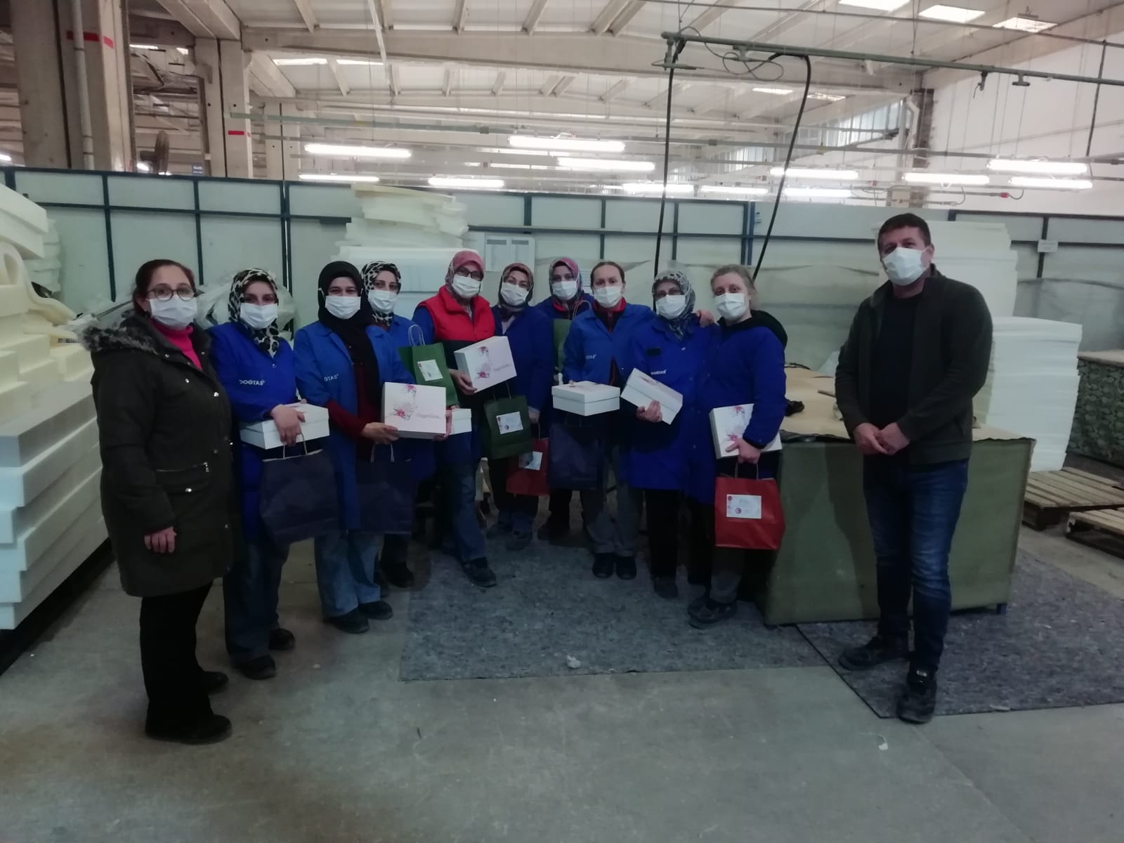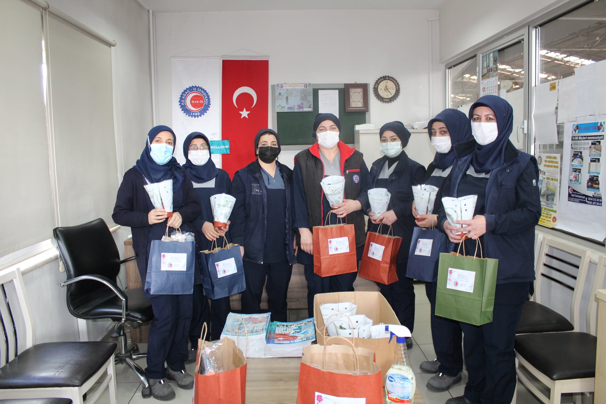 GENEL BAŞKANIMIZ AV. TUNCAY DOLU 8 MART DÜNYA KADINLAR GÜNÜ MÜNASEBETİYLE SENDİKAMIZIN BU GÜNE ÖZEL HAZIRLATTIĞI HEDİYELERİ KADIN ÜYELERIMIZE TAKDİM ETTİ VE BIR KUTLAMA MESAJI YAYINLADI.