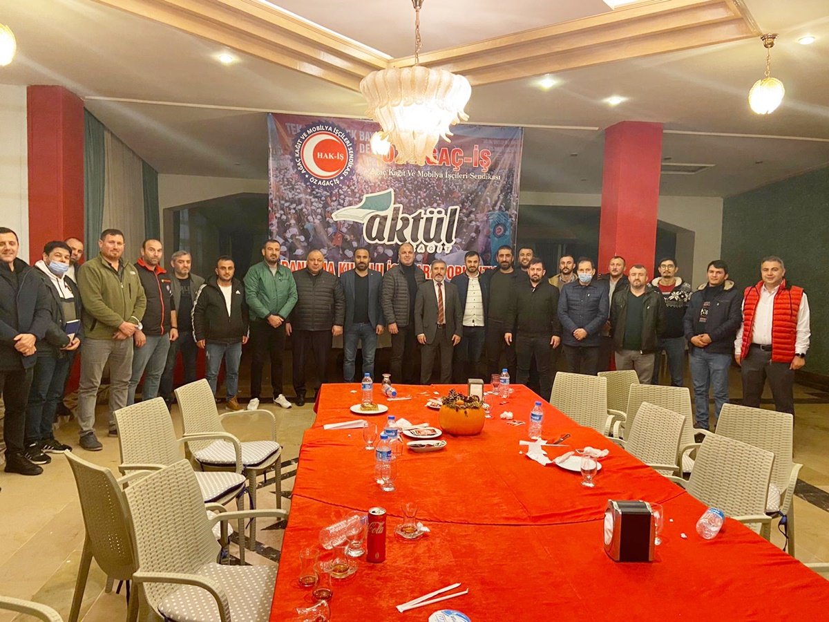 Öz Ağaç-İş Sendikası ile AKTÜL KAĞIT Fabrikasındaki çalışanları ilgilendiren yeni dönem Toplu İş Sözleşmesi görüşmeleri öncesi Öz Ağaç-İş Sendikası üyeleri aralarından seçilen 50 kişilik Aktül Kağıt Danışma Kurulumuzun ilk toplantısı Genel Başkanımız Av. Tuncay Dolu’nun katılımı ile 23 Kasım 2021 tarihinde Sakarya’da gerçekleşti.
