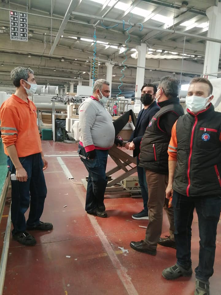 Üyelerimizle makineleri başında sohbet eden Genel Başkan Yardımcımız Bozkır, üyelerimizin taleplerini ve sorunlarını dinledi, sendikal çalışmalarımız hakkında bilgi verdi.