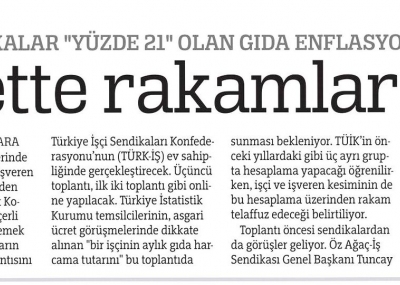 Devam eden 2021 yılı için asgari ücret belirleme görüşmeleri hakkında Genel Başkanımız Av. Tuncay Dolu bir basın açıklamasında bulundu. Genel Başkanımızın Dolu açıklamasında, "Asgari ücretteki artış belirlenirken yüzde 21 olan gıda enflasyonu oranı temel alınması ve yüzde 14 olan TÜFE’ye göre en az yüzde 7 gıda enflasyon farkı ve ekonomik refah payı da ilave edilerek asgari ücret artış oranının belirlenmesi gerektiğini" belirtti.