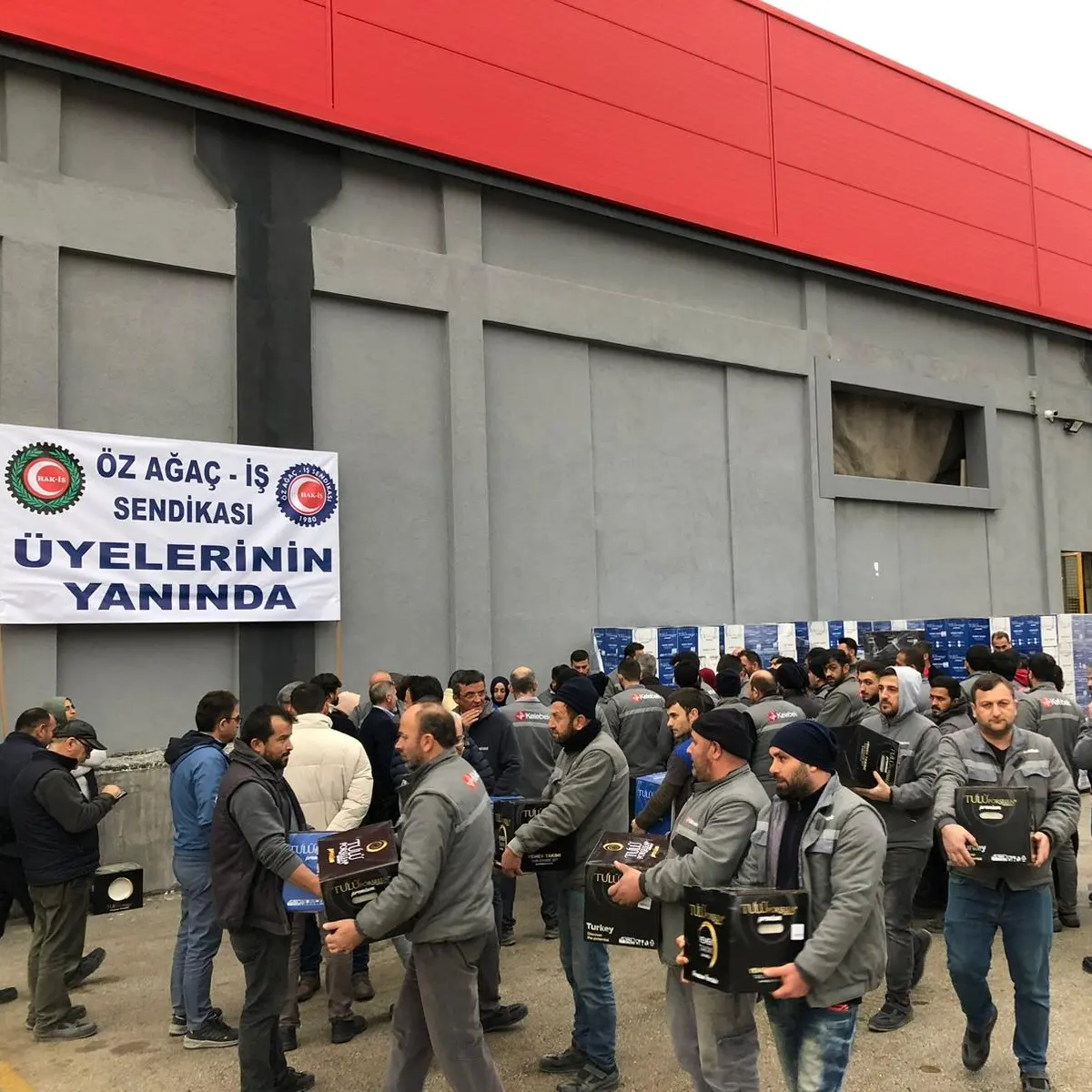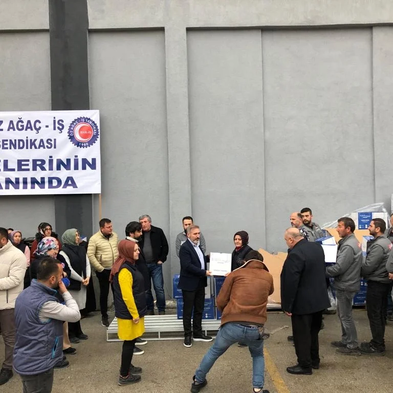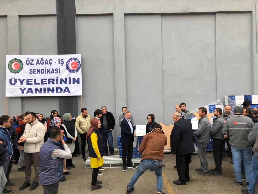 Depremde yaşanan sarsıntıdan dolayı maddi zarara uğrayan Düzce Kelebek Mobilya çalışanı 750 üyemizin ihtiyacı Sendikamız tarafından hızlı bir şekilde belirlenerek tedarik edildi.