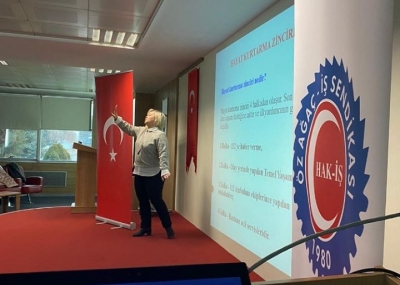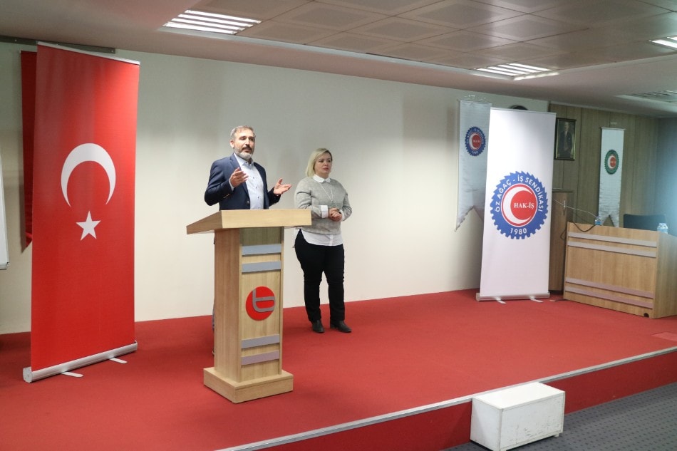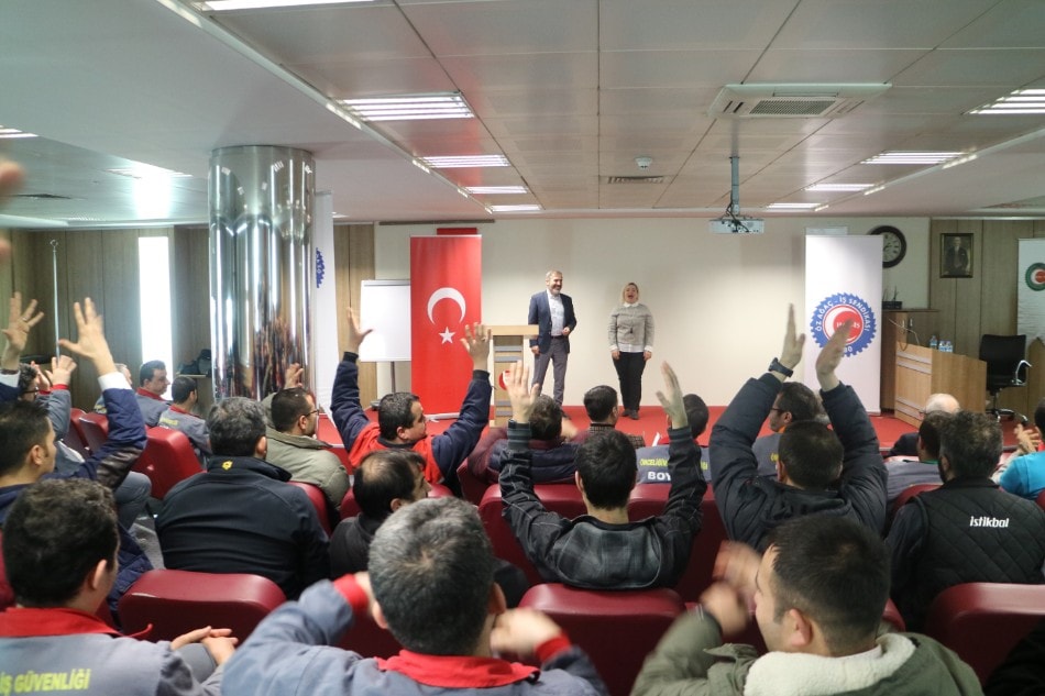 Bellona, İstikbal, Mondi Home ve Boyser Fabrikalarındaki işitme engelli üyelerimizin katıldığı ve Çalışanlar için Türkiye'de ilk defa düzenlenen eğitim programında işitme engelli çalışanlarımıza temel ilk yardım kuralları ve iş sağlığı ve güvenliği kuralları hakkında İşaret Dili Tercümanı Canan Öztürk tarafından eğitim verildi.