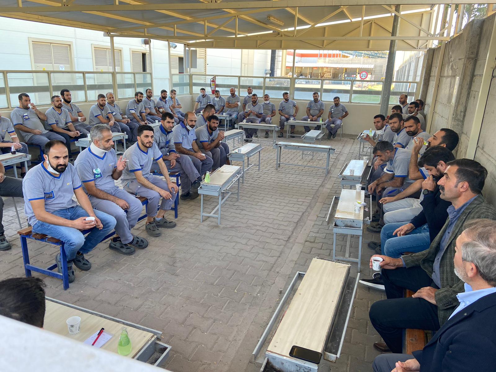 07.10.2021 tarihinde üyelerimizi makineleri başında ziyaret eden Genel Başkanımız Dolu, üyelerimizin sorun ve taleplerini dinledi, sendikal çalışmalarımız hakkında bilgilendirme yaptı. Genel Başkanımız İşveren yetkilileri ile de bir araya geldi.
