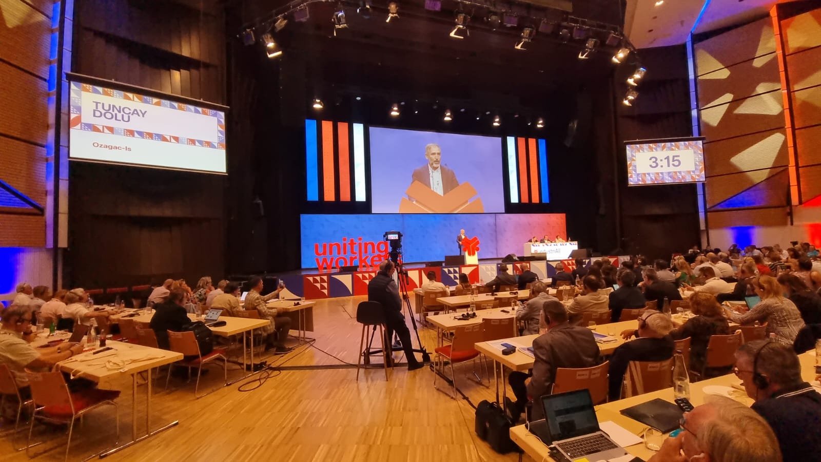 Sendikamız ve üyelerimiz adına IndustriALL'e katılmaktan memnuniyetini dile getiren Genel Başkanımız Dolu, konuşmasında işçi hakları ve dayanışmanın önemine vurgu yaptı. Dolu ayrıca ülkemizdeki sendikal mücadelemiz hakkında da Genel Kurula bilgi verdi.