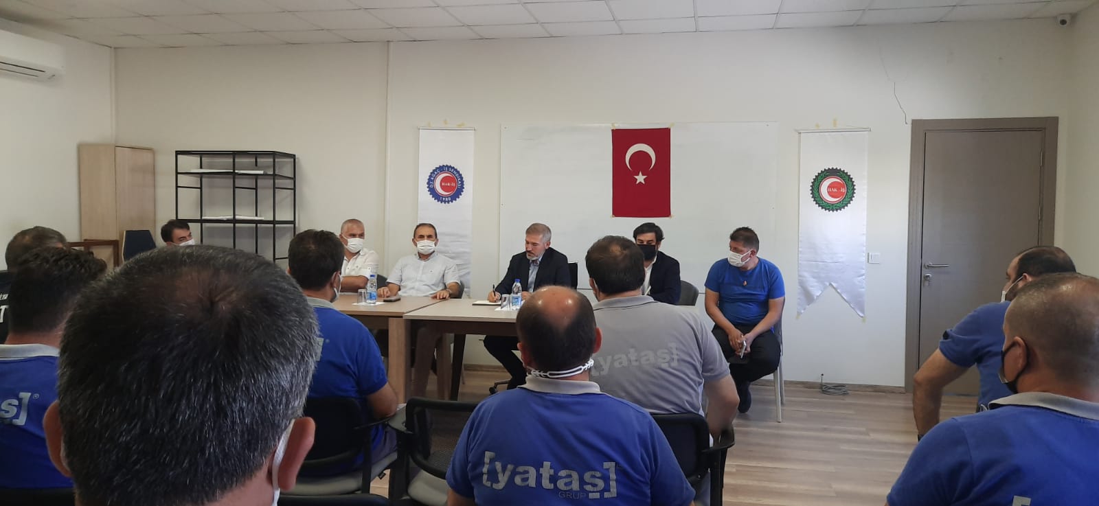 Düzenlenen toplantımıza Genel Başkanımız Av. Tuncay Dolu, Genel Başkan Yardımcılarımız Mert Doğan Bozkır, İşveren temsilcisi olarak Yataş Fabrika Müdürü Hüseyin Yıldırım, Yataş İK müdürü Selman Çilsal, Yataş Mobilya fabrikamızda çalışan üyelerimiz ve işyeri temsilcilerimiz katılmıştır.