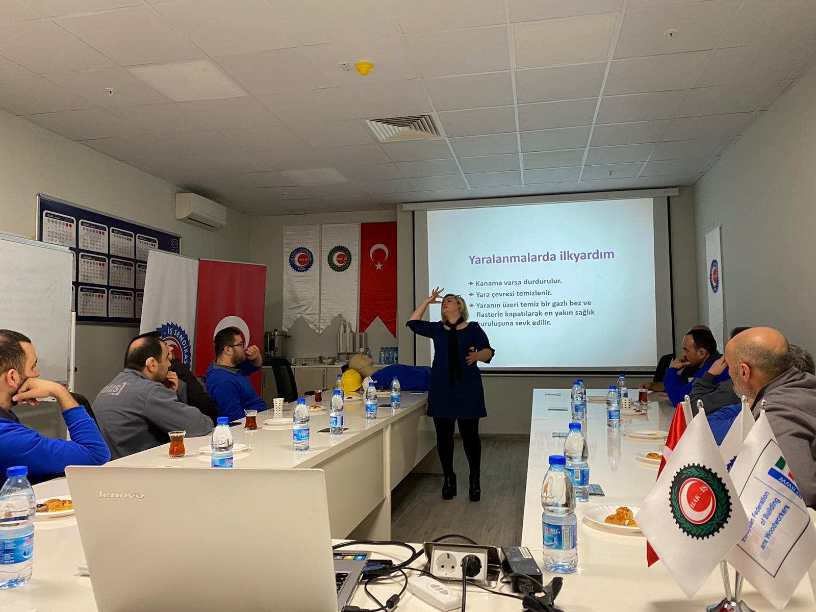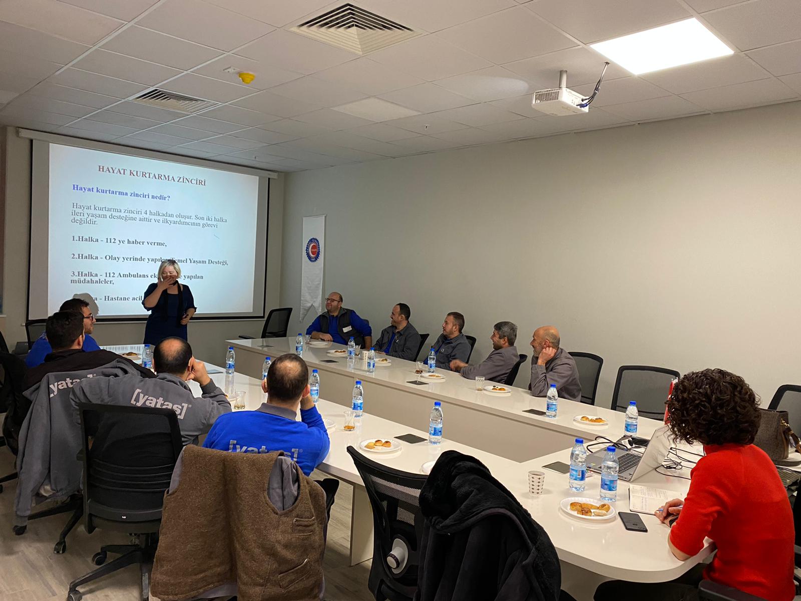 Türkiye'de ilk defa düzenlenen eğitim programında işitme engelli çalışanlarımıza temel ilk yardım kuralları ve iş sağlığı ve güvenliği kuralları hakkında İşaret Dili Tercümanı Canan Öztürk tarafından eğitim verildi.
