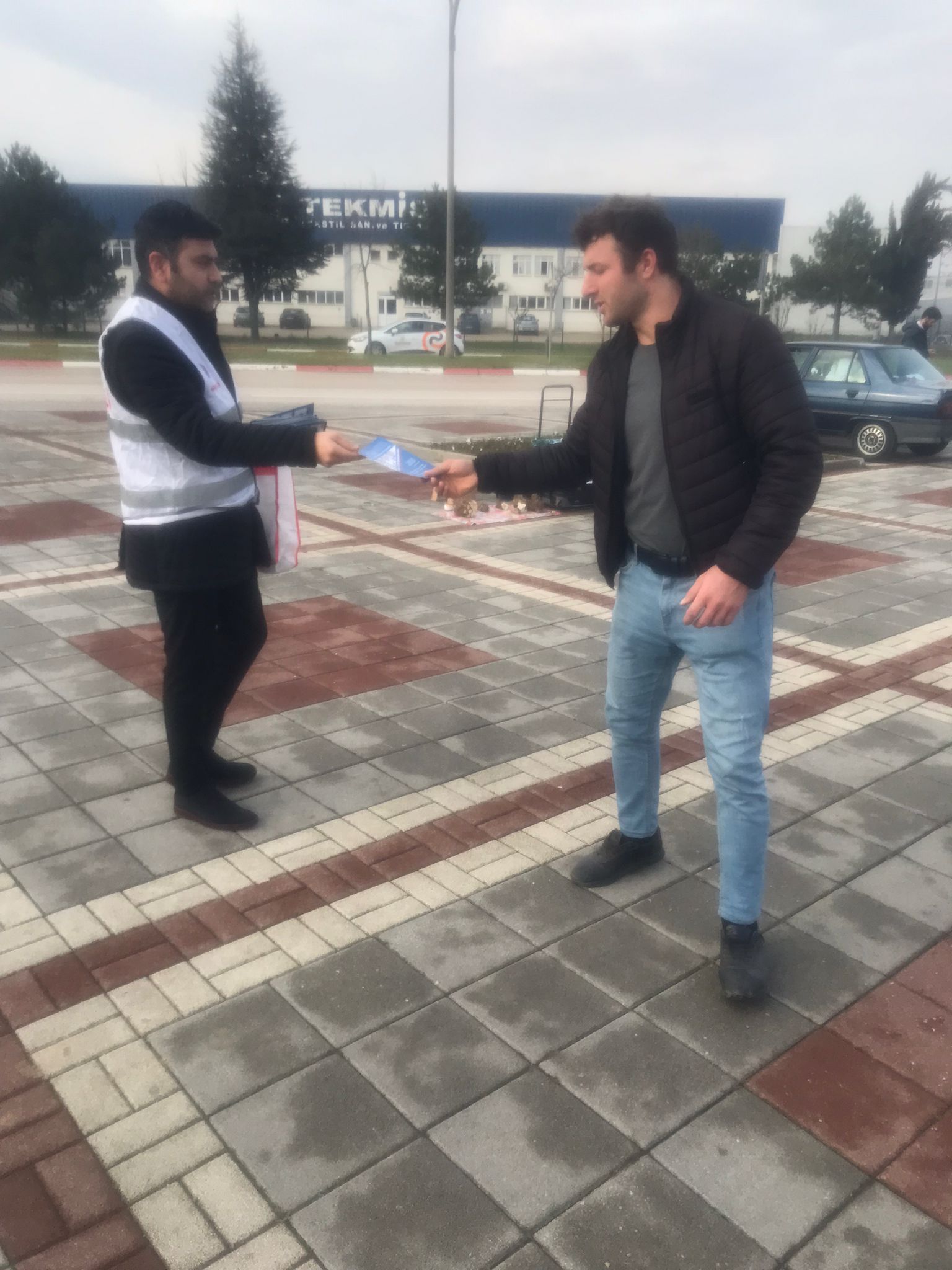 Mobilya sektörünün yaygın olduğu Bursa İnegöl'de yürüttüğümüz teşkilatlanma çalışmalarımız kapsamında Cuma Namazı çıkışında broşür dağıtılarak Mobilya çalışanları bilgilendirildi.
