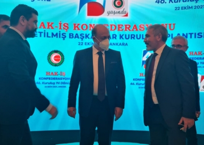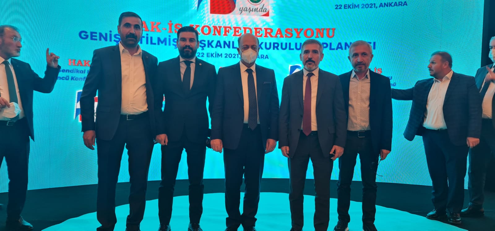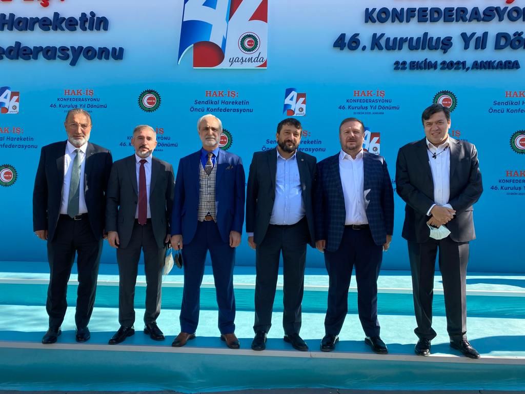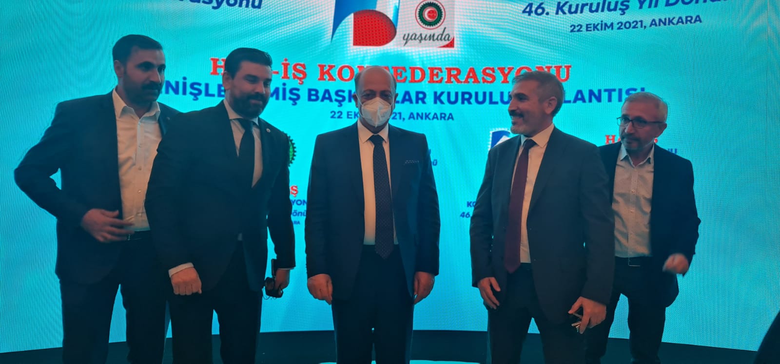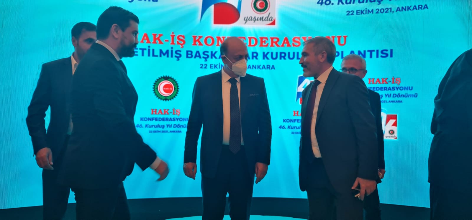 46. Yıl kutlamaları kapsamında, Genel Başkanımız Av. Tuncay DOLU, 46. Yıl kapsamında İçişleri Bakanımız Süleyman Soylu'nun da iştirakleri ile toplanan Başkanlar Kuruluna katıldı. HAK-İŞ Konfederasyonu Genel Başkanı Mahmut Arslan'ın açılış konuşması ile başlayan toplantıda İçişleri Bakanımız Süleyman Soylu'da bir konuşma yaptı. Toplantıya HAK-İŞ Konfederasyonu Yönetim Kurulu ve bağlı Sendikaların Genel Başkanları katıldı.