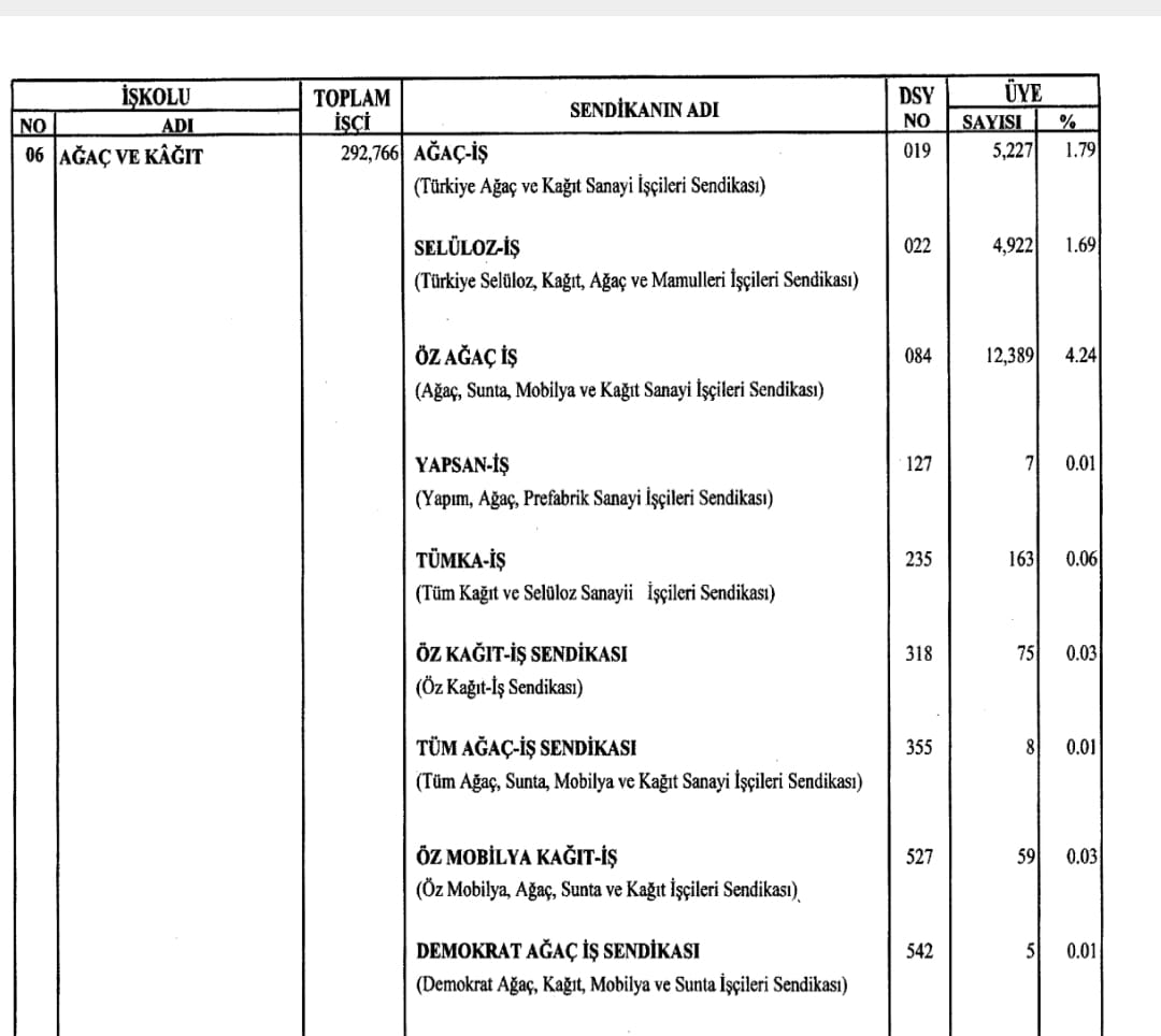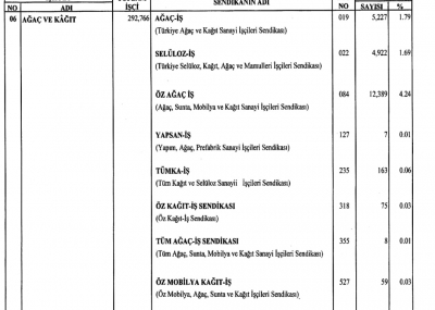 Açıklanan Ağaç, Kağıt ve Mobilya Sektörü Üye Sayısı İstatistiklerine göre, Öz Ağaç-İş İş Kolunun Lider Sendikası olma unvanını korudu ve büyümeye devam etti.