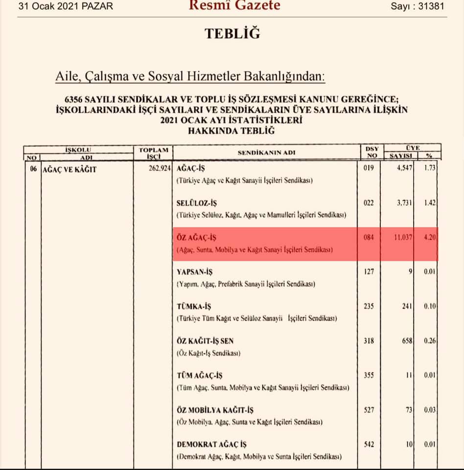 İş kokunda örgütlü bütün sendikaların üye toplamından daha fazla üyeye sahip olan Öz Ağaç İş Sendikası 2021’de de büyümeye devam edecektir.