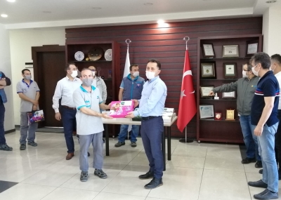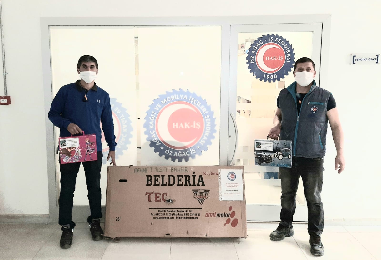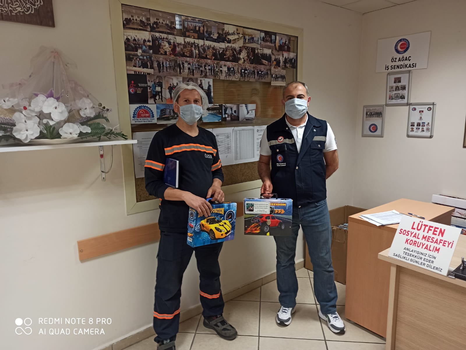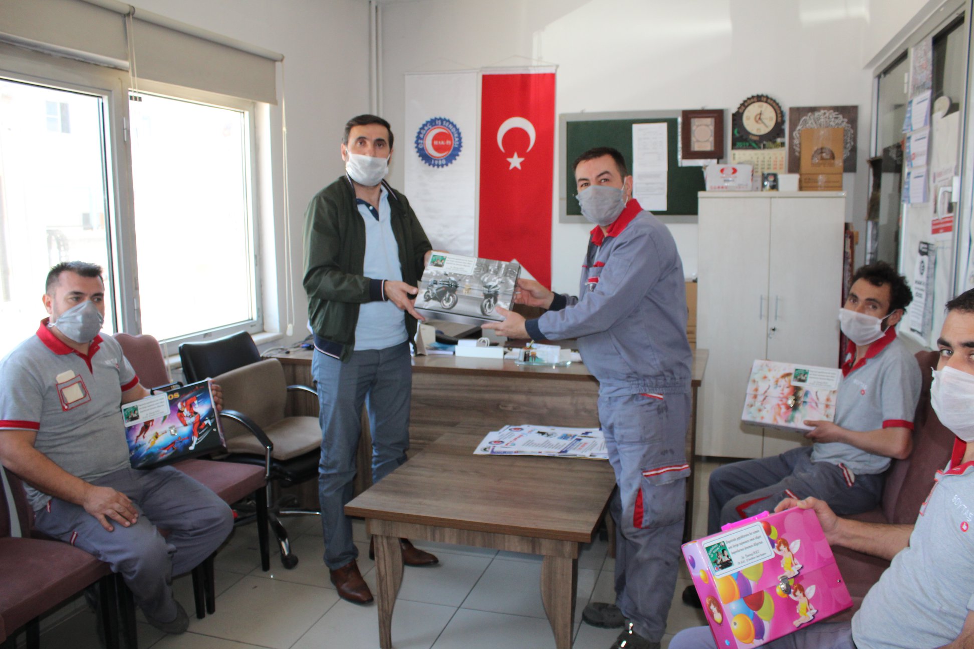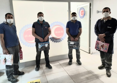 Genel Merkez Yönetimimiz tarafından gönderilen hediyeler baştemsilcilerimiz tarafından işyerlerinde sosyal mesafe korunarak üyelerimize teslim edildi.