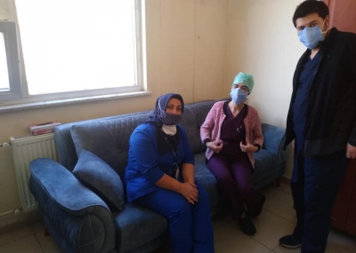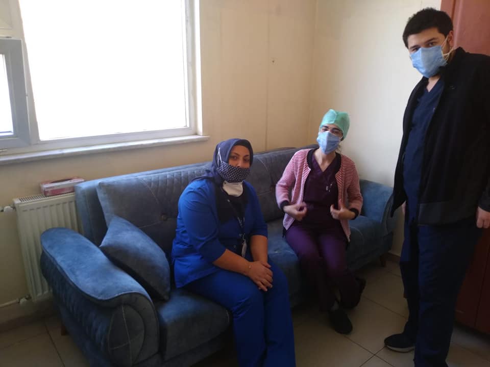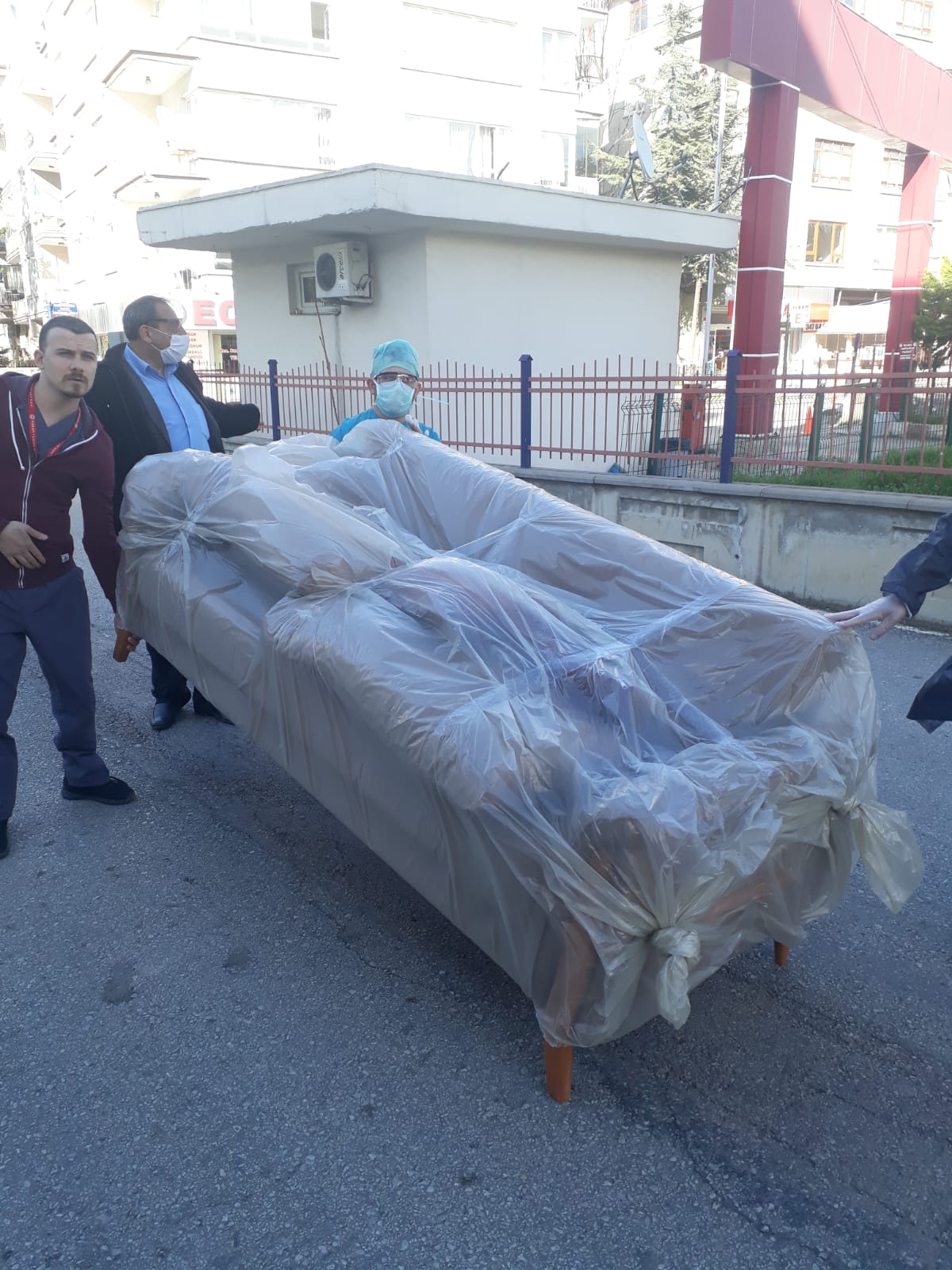 Koronavirüsle mücadelede 24 saat esasıyla çalışan, evlerinden uzak kalan sağlık çalışanlarına, HAK-İŞ Konfederasyonuna bağlı Öz Ağaç-İş Sendikası ve Öz Sağlık-İş Sendikası iş birliği ile hastanelerde kullanılmak üzere oturma grubu hediye edildi.