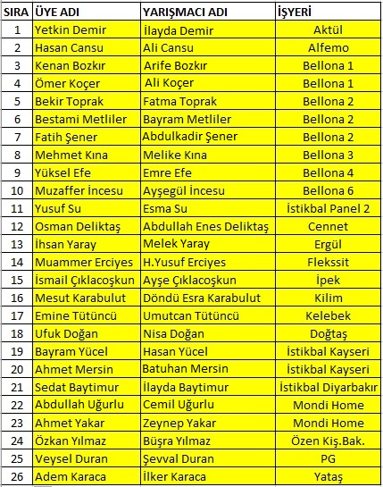 Yarışmamıza katılıp dereceye girenlerin listesi