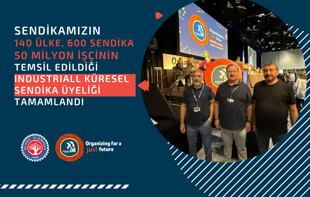 140 Ülkeden 600'den fazla Sendika ve 50 Milyon işçinin temsil edildiği IndustriALL Global Union (IndustriALL Küresel Sendikası) 4. Genel Kurulu gerçekleşti. Sendikamızın IndustriALL Küresel Sendika üyeliği Cenevre'de düzenlenen İcra Komitesi'nin ardından, Genel Başkanımız Av. Tuncay Dolu'nun da katıldığı dünya çapında 300'den fazla Sendika ve binin üzerinde Sendika temsilcisinin katılımıyla gerçekleşen IndustriALL Küresel Sendika 4. Genel Kurulunda da oy birliği ile kabul edildi.