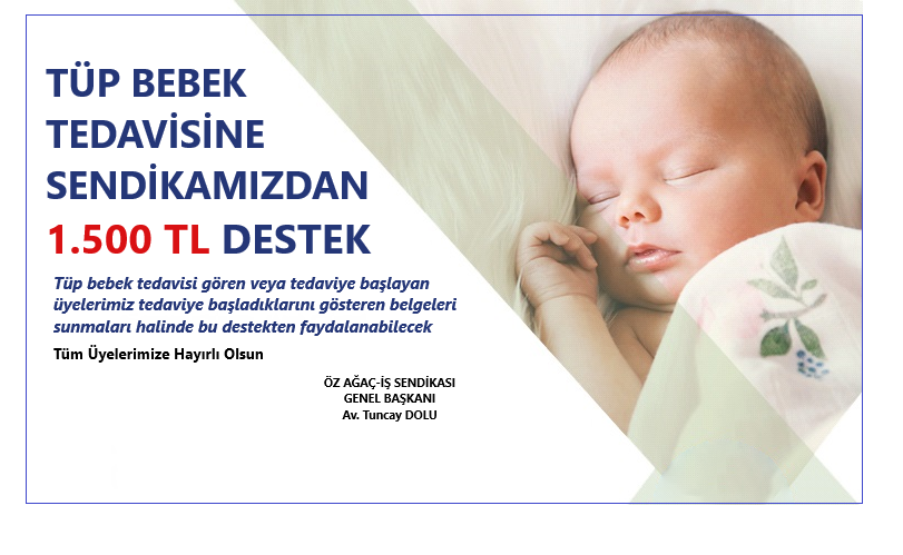 Genel Merkez Yönetimimiz tarafından başlatılan çalışma ile tüp bebek tedavisi gören veya tedaviye başlayan üyelerimiz tedaviye başladıklarını gösteren belgeleri işyeri baştemsilcilerimize sunmaları halinde bu destekten faydalanabilecek.