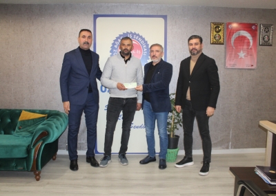 GENEL BAŞKANIMIZ DOLU, KAZA GEÇİREN ÜYEMİZE FERDİ KAZA SİGORTAMIZ KAPSAMINDA ÇEKİNİ TAKDİM ETTİ