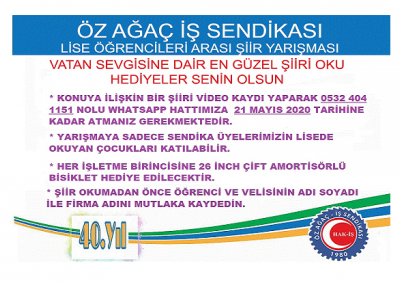 HAYDİ GENÇLER ŞİİRİNİ OKU ÖDÜLÜNÜ KAP Sevgili gençler Okulunuzdan ve arkadaşlarınızdan uzak ancak evinizde sağlık ve huzur içinde bulunduğunuz bu hassas günlerde sizler için de bir ...